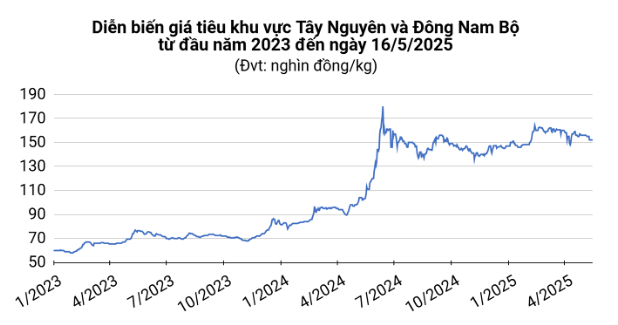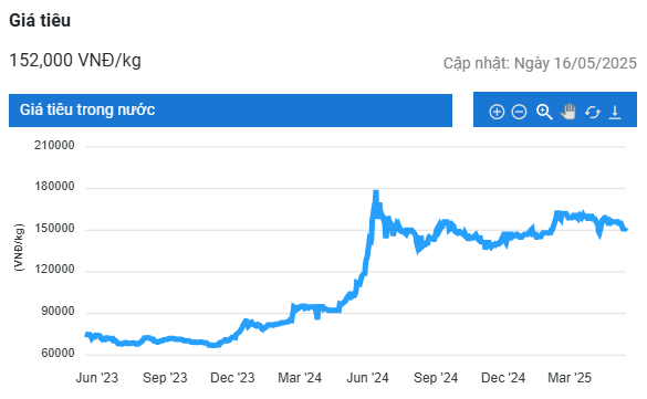 Cụ thể, tại hai tỉnh Tây Nguyên là Đắk Lắk và Đắk Nông, giá tiêu đồng loạt tăng 1.000 đồng/kg, lên mức 152.000 đồng/kg. Tại Gia Lai, giá tiêu vẫn giữ ổn định ở mức 151.000 đồng/kg.