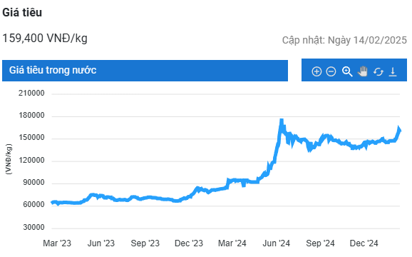 Nếu so với cùng kỳ năm ngoái, giá tiêu trong nước hiện đã tăng khoảng 84 – 94%, tương ứng 71.500 – 76.500 đồng/kg.