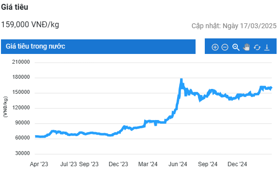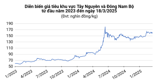 Giá tiêu hôm nay (18/3) giao dịch ở mức 157.000 – 160.000 đồng/kg, tăng 1.000 đồng/kg tại Đắk Lắk và Đắk Nông, nhưng giảm 1.000 đồng/kg tại Bình Phước. Trên thị trường thế giới, giá tiêu Indonesia và Ấn Độ có xu hướng tăng.