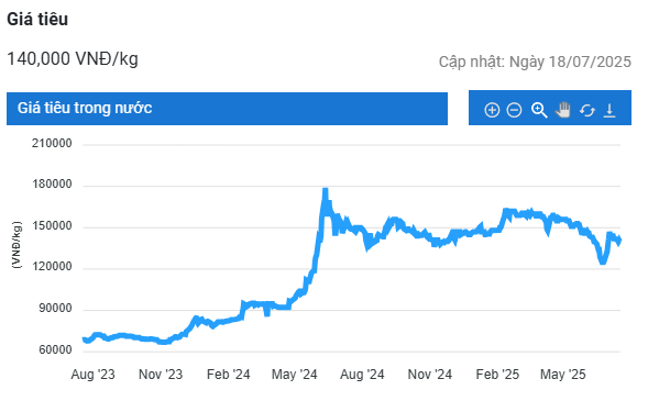 Giá tiêu hôm nay (18/7) tại thị trường trong nước tiếp tục dao động trong khoảng 138.000 – 140.000 đồng/kg. Trong 5 tháng đầu năm, Indonesia đã xuất khẩu 4.400 tấn tiêu sang Việt Nam, tăng 58% so với cùng kỳ năm ngoái.