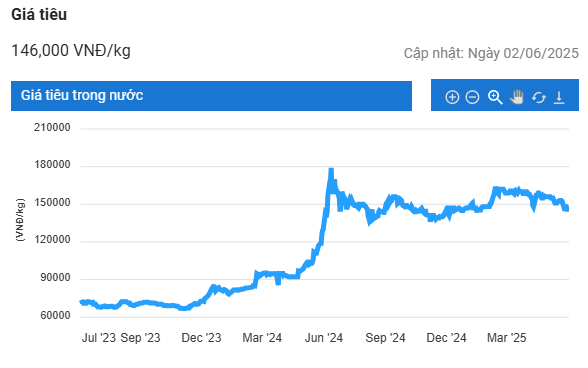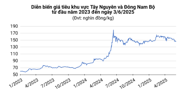 Giá tiêu tại Đắk Nông và Gia Lai cũng đang được giao dịch ở mức 145.000 đồng/kg, tăng lần lượt 1.000 đồng/kg và 500 đồng/kg.