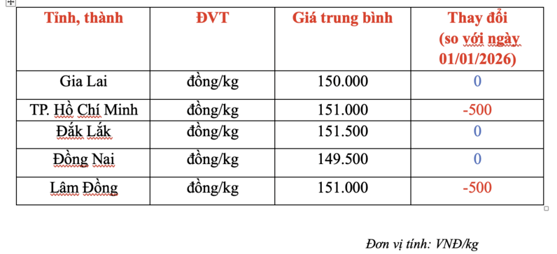 Giá tiêu hôm nay 2/01: Giảm nhẹ 500 đồng/kg tại TP. Hồ Chí Minh và Lâm Đồng. Trong khi các địa phương còn lại giữ ổn định ở mức 149.500 – 151.500 đồng/kg.