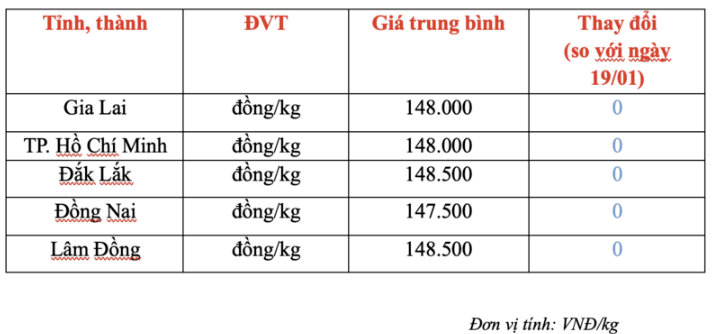 Trong khi đó, giá tiêu thị trường trong nước hôm nay (19/01) không ghi nhận biến động mới. Hiện hồ tiêu trong nước giao dịch quanh ngưỡng 147.500 - 148.500 đồng/kg.