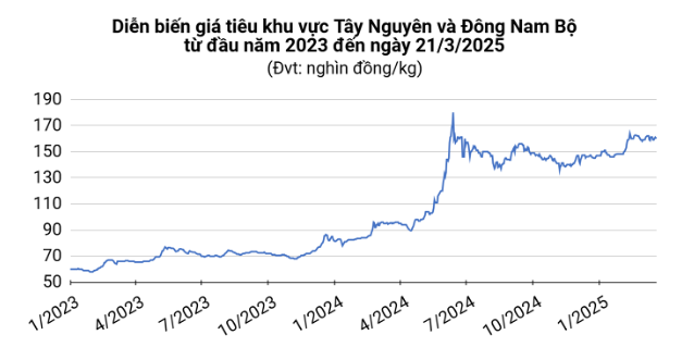 Giá tiêu hôm nay (21/3) giao dịch ở mức 159.500 – 160.500 đồng/kg, tăng nhẹ 500 đồng/kg tại khu vực Đông Nam Bộ. Trên thị trường thế giới, giá tiêu Brazil và Indonesia cũng đồng loạt tăng.