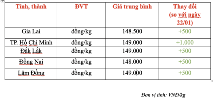 Trong khi đó, giá tiêu thị trường trong nước hôm nay (23/01) không ghi nhận biến động mới. Hiện hồ tiêu trong nước duy trì ổn định quanh ngưỡng 148.000 - 149.000 đồng/kg.