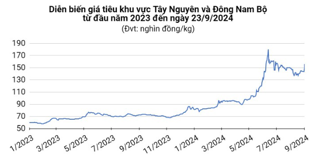 Giá tiêu hôm nay ngày 23/9 đi ngang tại các địa phương sản xuất trọng điểm. Sản xuất hồ tiêu tại Brazil trong năm nay bị thiệt hại nặng nề bởi hạn hán do Elnino gây ra. Trong 8 tháng đầu năm, xuất khẩu tiêu của nước này đã giảm 10,4% so với cùng kỳ năm 2023.