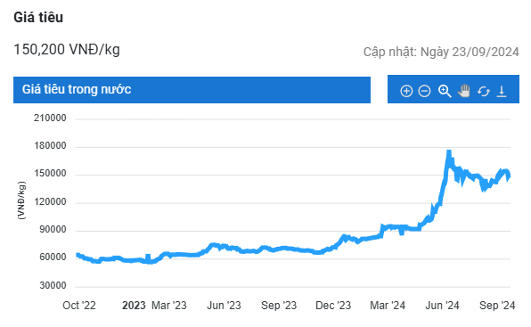 Giá tiêu hôm nay ngày 24/9 tăng từ 1.500 – 2.500 đồng/kg tại các địa phương sản xuất trọng điểm. Năm 2024, sản lượng tiêu toàn cầu dự kiến chỉ đạt 465.000 tấn trong khi nhu cầu tiêu thụ lên đến 529.000 tấn. Điều này khiến lượng tồn kho tiếp tục giảm xuống mức thấp nhất trong 6 năm qua.