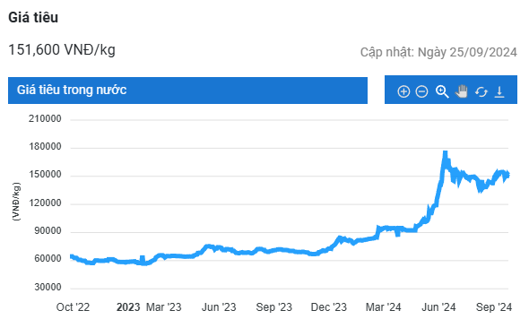 Tương tự, giá tiêu tại tỉnh Gia Lai cũng giảm 3.000 đồng/kg và được giao dịch ở mức 149.000 đồng/kg.
