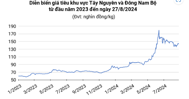 Cụ thể, thương lái tại Đắk Lắk và Đắk Nông tiếp tục thu mua hồ tiêu với giá 144.000 đồng/kg.