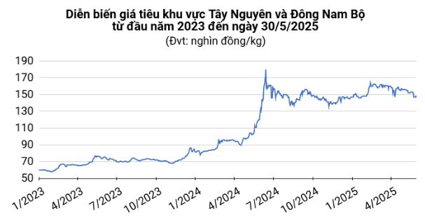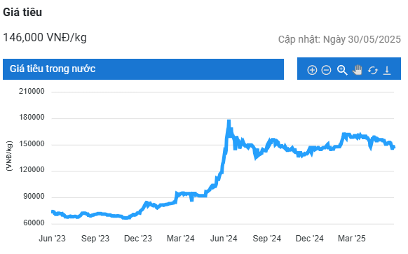 Giá tiêu hôm nay (30/5) tại thị trường trong nước đồng loạt giảm 1.000 – 2.000 đồng/kg, dao động trong khoảng 145.500 – 146.500 đồng/kg. Trong khi đó, giá tiêu thế giới khá lặng sóng sau phiên điều chỉnh mạnh của ngày hôm trước.