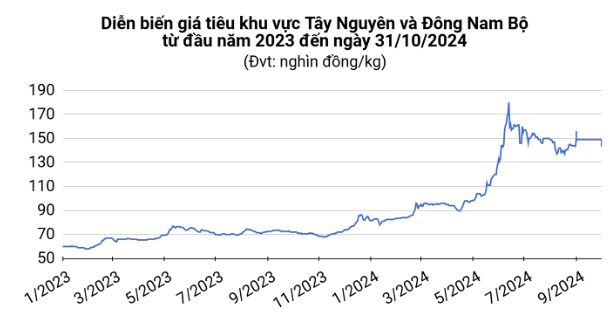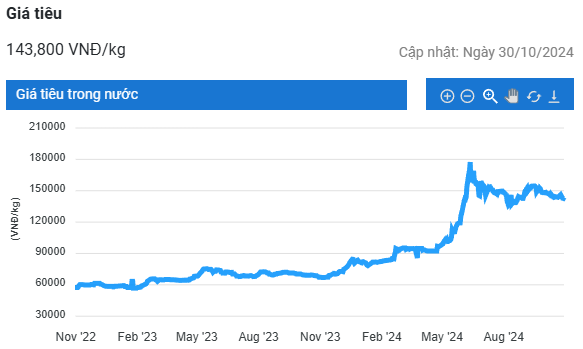 Giá tiêu hôm nay (31/10) ổn định trong khoảng 143.000 – 144.500 đồng/kg. Từ đầu năm đến nay, Trung Quốc liên tục đẩy mạnh nhập khẩu tiêu từ Indonesia và hạn chế mua từ Việt Nam.