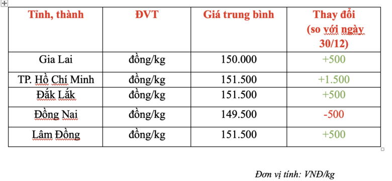 Trong khi đó, giá tiêu thị trường trong nước hôm nay (31/12) ghi nhận biến động trái chiều so với ngày hôm qua. Hiện giá tiêu trong nước dao động trong khoảng 149.500 - 151.500 đồng/kg.