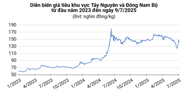 Tại hai tỉnh Bà Rịa – Vũng Tàu và Đồng Nai, giá tiêu giảm 2.000 đồng/kg, về mốc 140.000 đồng/kg.