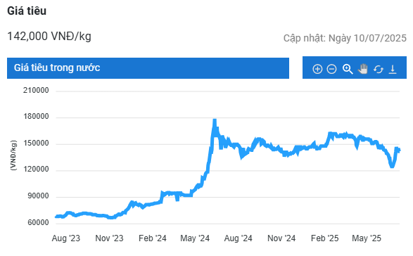 Giá tiêu hôm nay (10/7) tại thị trường trong nước duy trì ổn định ở mức 140.000 – 142.000 đồng/kg. Trên thị trường thế giới, giá tiêu Campuchia ghi nhận mức tăng mạnh so với cùng kỳ năm ngoái.