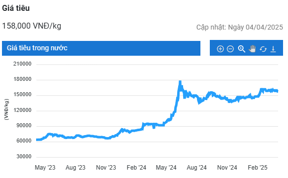 Giá tiêu hôm nay (4/4) không ghi nhận biến động mới ở cả thị trường trong nước và thế giới. Cục Xuất nhập khẩu nhận định, trong ngắn hạn, giá hạt tiêu trong nước dự kiến sẽ duy trì ổn định ở mức cao, với khả năng tăng nhẹ do nhu cầu xuất khẩu lớn.