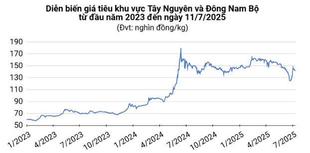 Giá tiêu sáng nay tại các tỉnh thành sản xuất trọng điểm tiếp tục dao động trong khoảng 140.000 – 142.000 đồng/kg.