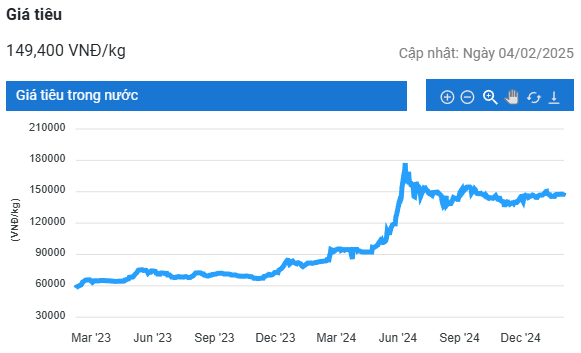 Ghi nhận trong sáng nay 5/2, giá tiêu dao động trong khoảng 149.000 – 150.200 đồng/kg tại các tỉnh thành sản xuất trọng điểm.