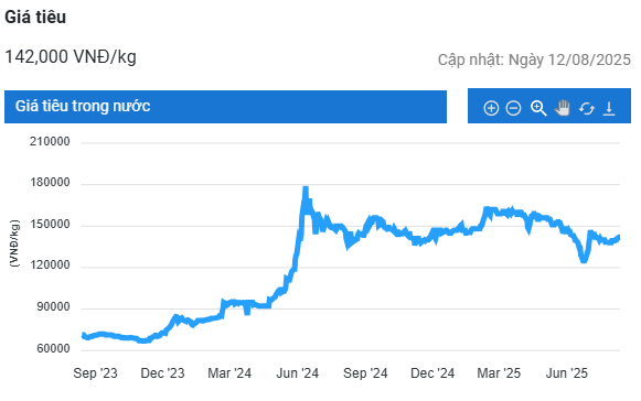 Theo khảo sát, giá tiêu sáng nay tại các tỉnh thành sản xuất trọng điểm vẫn ổn định trong khoảng 140.000 – 142.000 đồng/kg.