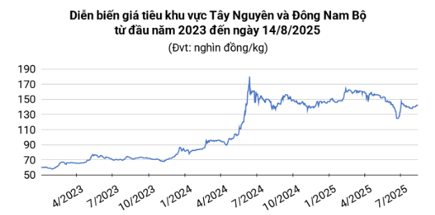 Thị trường tiêu trong nước hôm nay tiếp tục ổn định, giá giao dịch tại các khu vực sản xuất trọng điểm duy trì trong khoảng 140.000 – 142.000 đồng/kg.