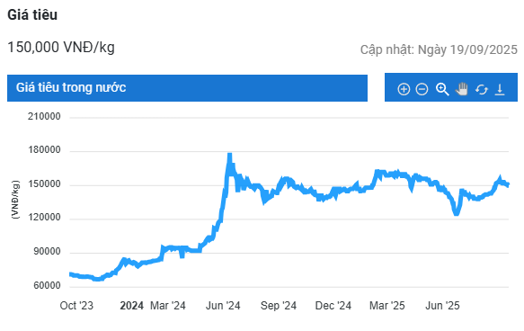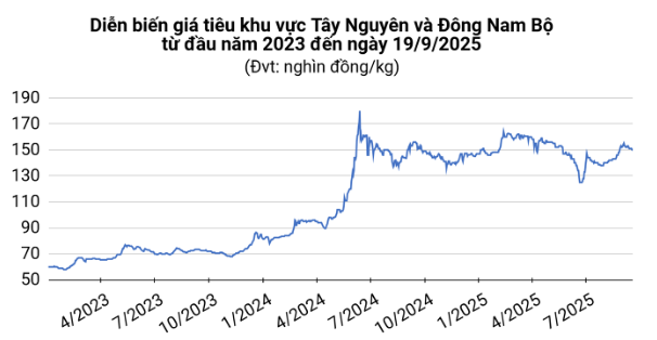 Giá tiêu hôm nay tại thị trường trong nước dao động trong khoảng 147.000 – 150.000 đồng/kg. Theo VPSA, trong 16 ngày đầu tháng 9, xuất khẩu tiêu của Việt Nam sang Mỹ giảm 15,4% so với cùng kỳ tháng trước, trong khi Trung Quốc và UAE lại tăng mạnh lần lượt 47% và 31,6%.