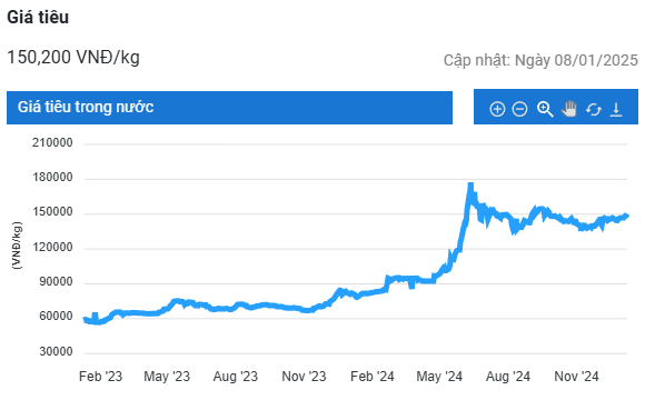 Tương tự, giá tiêu tại tỉnh Gia Lai cũng tăng 500 đồng/kg và được giao dịch ở mốc 150.000 đồng/kg.