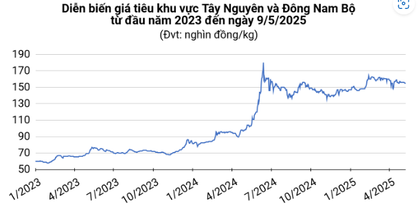 Giá tiêu hôm nay (9/5) tại thị trường trong nước ổn định trong khoảng 153.000 – 155.000 đồng/kg. Trên thế giới, giá tiêu Indonesia tăng nhẹ trở lại. Theo VPSA, nhập khẩu tiêu tháng 4 của Việt Nam tiếp tục tăng và tiệm cận mức kỷ lục năm 2021.