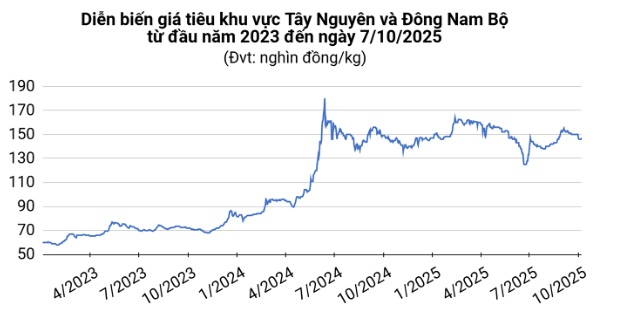 Giá tiêu hôm nay tại thị trường trong nước tăng 1.000 -2.000 đồng/kg, dao động trong khoảng 145.000 – 147.000 đồng/kg. Trong tháng 9, xuất khẩu hồ tiêu ghi nhận mức tăng trưởng hai con số, cho thấy tín hiệu phục hồi rõ rệt của thị trường.