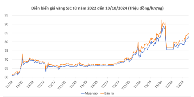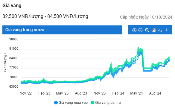 | Giá vàng SJC | 10/10/24 | Thay đổi (nghìn đồng/lượng) | |||