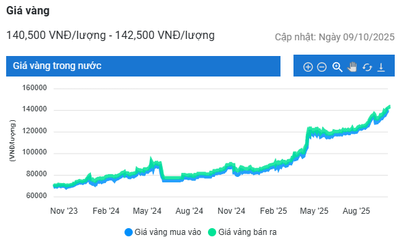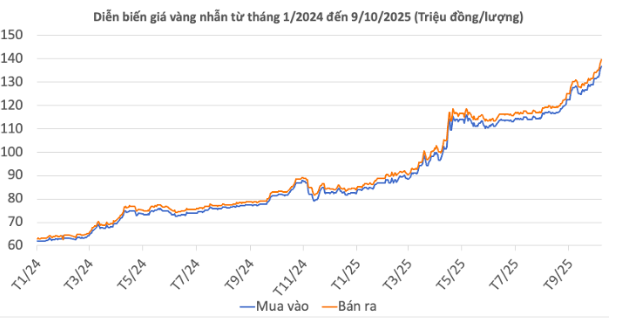 | Giá vàng nhẫn 99,99 | 9/10/2025 | Thay đổi (nghìn đồng/lượng) | ||