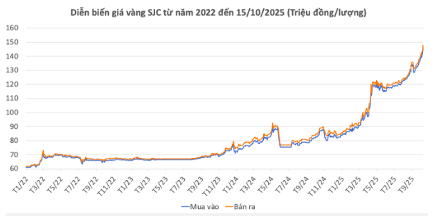 Đợt tăng này kéo giá vàng hôm nay lên 145 - 145,6 triệu đồng/lượng ở chiều mua vào và 147,6 triệu đồng ở chiều bán ra.