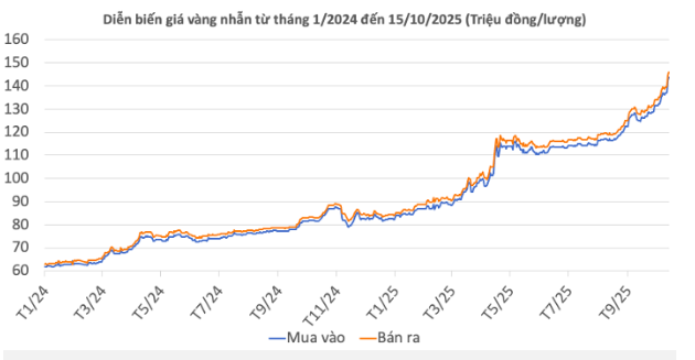 | Giá vàng nhẫn 99,99 | 15/10/2025 | Thay đổi (nghìn đồng/lượng) | ||