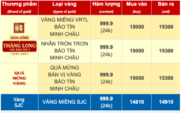 | 75% (vàng 18K) | 102,61 | 110,10 | 1650 | 1650 | |