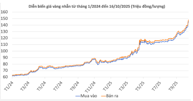 | Giá vàng nhẫn 99,99 | 16/10/2025 | Thay đổi (nghìn đồng/lượng) | ||