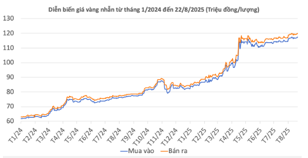 | Giá vàng nhẫn 99,99 | 22/8/2025 | Thay đổi (nghìn đồng/lượng) | ||