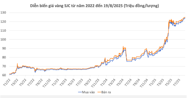 Giá vàng trong nước lập đỉnh mới dù vàng thế giới tiếp tục đi ngang khi giới đầu tư tập trung vào cuộc gặp giữa Tổng thống Mỹ Donald Trump với các lãnh đạo Ukraine và châu Âu, cùng hội nghị thường niên của Fed tại Jackson Hole dự kiến diễn ra trong tuần này.