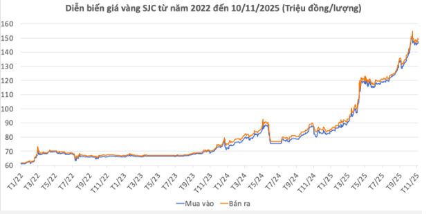 | SJC | 144,70 | 147,20 | 1400 | 1400 |
