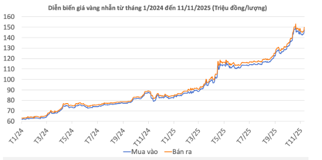 | Giá vàng nhẫn 99,99 | 11/11/2025 | Thay đổi (nghìn đồng/lượng) | ||