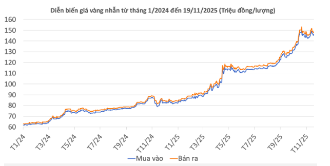 | Giá vàng nhẫn 99,99 | 19/11/2025 | Thay đổi (nghìn đồng/lượng) | ||