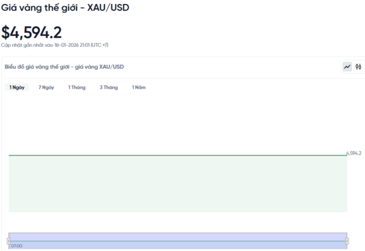 Giá vàng thế giới hôm nay 19/01/2026 và biểu đồ biến động giá vàng thế giới 24h qua