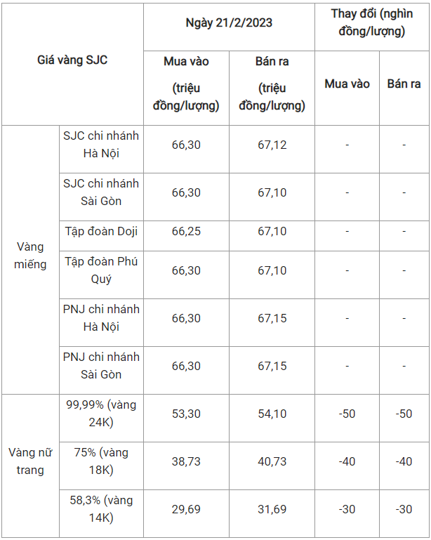 Xem thêm: Giá vàng hôm nay 22/2