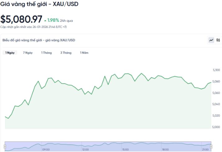 Giá vàng thế giới hôm nay 27/01/2026 và biểu đồ biến động giá vàng thế giới 24h qua