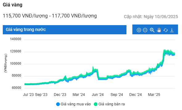 Trong phiên giao dịch sáng ngày 10/6, thị trường biến động nhẹ. Tại thời điểm 7h20 (giờ Việt Nam), giá vàng giao ngay gần như đi ngang ở 3.323 USD/ounce, theo kitco, trong khi giá vàng giao tháng 8 giảm 0,33% xuống 3.344 USD.