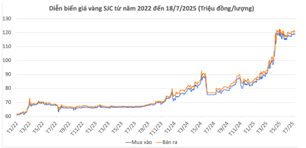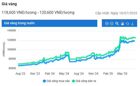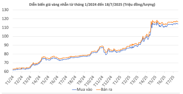 | Giá vàng nhẫn 99,99 | 18/7/2025 | Thay đổi (nghìn đồng/lượng) | ||