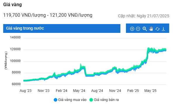 | Giá vàng nhẫn 99,99 | 21/7/2025 | Thay đổi (nghìn đồng/lượng) | ||