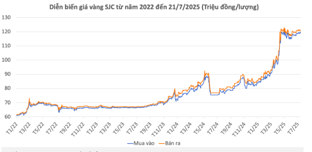 Giá vàng miếng SJC, vàng nhẫn biến động