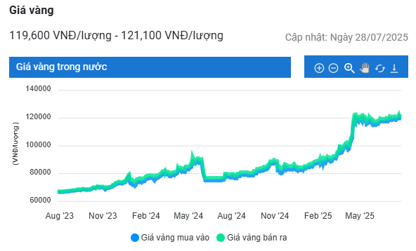 Giá vàng tiếp tục giảm trong phiên giao dịch sáng ngày thứ Hai (28/7) vì các nhà đầu tư chuyển sự chú ý sang thị trường chứng khoán, với các chỉ số đang giao dịch ở mức đỉnh kỷ lục.