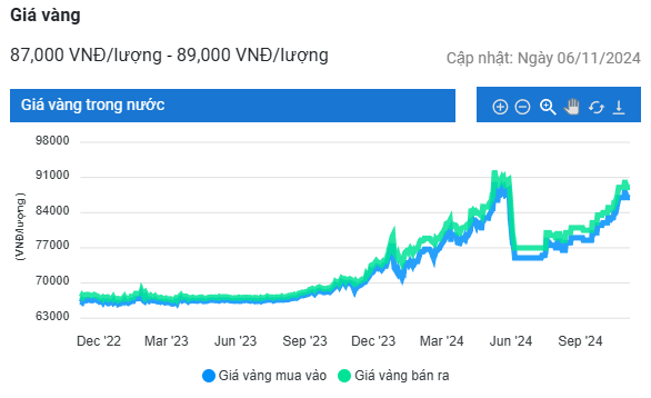 Trong phiên giao dịch sáng ngày 6/11, thị trường tương đối ổn định. Tại thời điểm 6h45 (giờ Việt Nam), giá vàng giao ngay ghi nhận ở 2.744,5 USD/ounce và giá vàng giao tháng 12 giao dịch ở 2.754,3 USD.