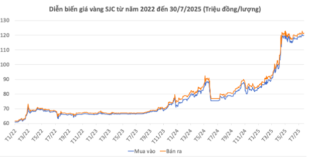 Sau điều chỉnh, giá vàng hôm nay được mua vào ở 119,5 - 120 triệu đồng và bán ra ở 121,5 triệu đồng.