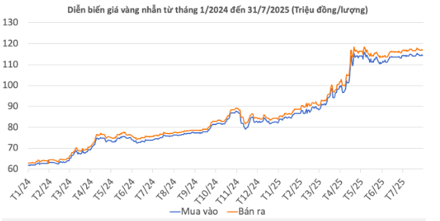 | Giá vàng nhẫn 99,99 | 31/7/2025 | Thay đổi (nghìn đồng/lượng) | ||