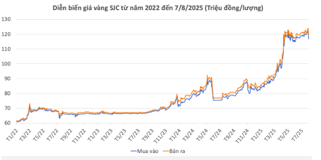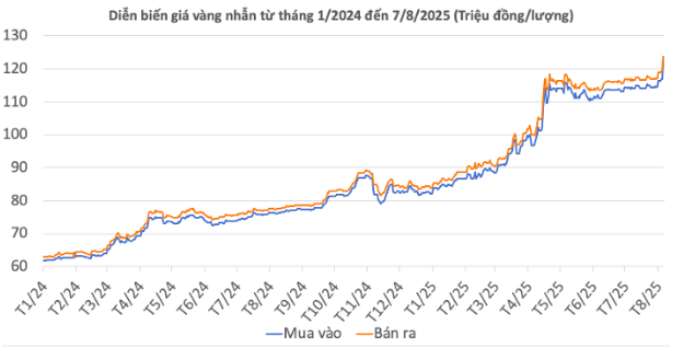 | Giá vàng nhẫn 99,99 | 7/8/2025 | Thay đổi (nghìn đồng/lượng) | ||